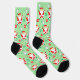 Tennis Christmas gift socks featuring Santa Claus tennis player and holiday candy pattern.