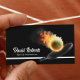 Tennis Ball in Fire Professional Tennis Instructor Black Business Cards.