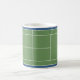 Creative tennis coffee mug featuring tennis court and balls art. To personalize edit text to add name of your favorite tennis player, coach or sports lover.