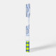 This tennis-themed design uses tennis balls create a bright polka dot pattern, and there is a further pattern using tennis rackets. A white stripe gives space for you to personalize with a name or other text. Background: two shades of blue.