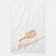 Rusty Terracotta Orange Clay Court Color Personalized Tennis Monogram Mame on a kitchen towel with a simple cute tennis racket graphic and custom name or text in a feminine girly and modern pretty script font monogram. A perfect gift for the tennis player, team, or coach, that can be used in the kitchen, or as a sweat towel in your tennis bag.