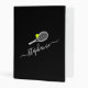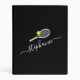 Mini binder with a black and white elegant and feminine tennis monogram with personalized name in a girly script font and custom subject down the spine - perfect for the tennis coach or player to store game notes, team information, or camp rules in.