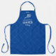 Funny personalized tennis apron with "I'll be your server today" quote in blue and white with a small tennis racket, ball, and subtle tennis court net pattern background, perfect for tennis club restaurant, bar, and snack employees, tennis team bbq cookout, and avid tennis player who loves to cook and bake.