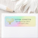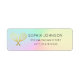 Simple but lovely return custom personalized return address label in mermaid rainbow gradient ombre colors and minimal simple golden colored rackets and tennis ball. Tennis racquet theme return address label design.