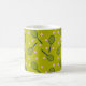 This mug has a pattern of dark blue tennis rackets and pale pink tennis balls against a yellow-green background.