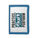 This modern design combines elegance and power, staging two silhouettes of tennis players in an uncluttered composition. With a stylized blue background representing a tennis court, the message 'Practical, Play, Performe' is clear: effort leads to success. Ideal for tennis enthusiasts looking to show their love of the game on clothes or accessories.