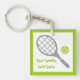 Tennis racket and ball keychain displaying a grey racket, a green tennis ball and your text on white background with green border. Personalize it and add the text “Best tennis player” or monogram, name or your message. The perfect gift for the tennis player or tennis lover in your life. Some elements courtesy of vectorportal.com.