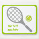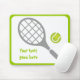 Tennis racket and ball mouse pad that displays a grey racket, a green tennis ball and your text on white background with green border. This cool design is a template and it is completely customizable. The perfect gift for the tennis player or tennis lover in your life. Some elements courtesy of vectorportal.com.