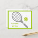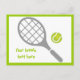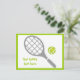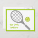Tennis racket and ball horizontal postcard that features a grey racket, a green tennis ball and your text on white background with green border. This cool design is a template and it is completely customizable. The perfect gift for the tennis player or tennis lover in your life. Some elements courtesy of vectorportal.com.