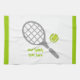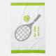 Tennis racket and ball kitchen towel displaying a grey racket, a green tennis ball and your text on white background with green border. Personalize it and add the text “Best tennis player” or monogram, name or your message. The perfect gift for the tennis player or tennis lover in your life. Some elements courtesy of vectorportal.com.