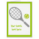 Tennis racket and ball vertical greeting card that displays a grey racket, a green tennis ball and your text on white background with green border. Personalize it and add the text “Best tennis player” or monogram, name or your message. The perfect gift for the tennis player or tennis lover in your life. Some elements courtesy of vectorportal.com.