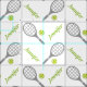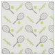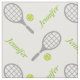 Tennis racket, ball and your name personalized custom fabric design featuring a pattern of a grey racket, a green tennis ball on white background and your name in green. This cool design is the perfect gift for the tennis player or tennis lover in your life. Some elements courtesy of vectorportal.com.