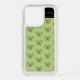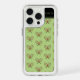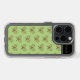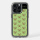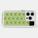 The design features a repeating pattern of tennis balls and red tennis rackets, on a light green background. Personalize this case by adding your initials in light green on black.