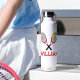 Tennis two rackets and ball design in red, yellow and black sporty water bottle, personalize with your own name, coach or tennis club. Original graphic art and design by Sarah Trett for www.mylittleeden.com