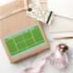 Tennis-themed gift stickers, party favor labels and envelope seals featuring tennis court on pink background. Edit text to personalize.