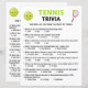 Tennis Trivia Game's answer key: 1. A, 2. A, 3. C, 4. C, 5. C, 6. B, 7. B, 8. A, 9. A, 10. B, 11. A, 12. A, 13. C, 14. B, 15. C, 16. B, 17. B, 18. A.