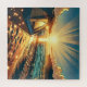 Pretty beach camping themed vintage puzzle with an ai illustration of a tent on a beach as the sun is rising. Ai illustration done in a hyper realistic comic book style art.