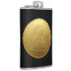 Spanish Gold Doubloon on Black Flask features an accurate englarged reproduction of the kind of antique gold coin pirates used to bury in a treasure chest on the beach of some tropical isle. Remember that when you fill it with your favorite rum. Yo ho ho!