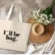 Reusable Shopping Tote and Beach bag – with funny Terminator inspiration 'I’ll Be Bag´ (`Miss me already?´) quote print in modern black and white typography.