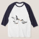 I bought the Men's Basic 3/4 Sleeve Raglan T-Shirt, White/Navy. It arrived on time for a gift and is of a great quality and fits perfectly! So cute! Zazzle has done it again! The printing was clear and filled in solidly.
