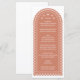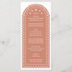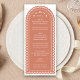 If you're dreaming of an elegant fall wedding, this menu card is for you. This romantic arch wedding menu features a delicate design reminiscent of blossoms and fluttering leaves and beautiful typography. The terra cotta color creates a rich, earthy warmth, complementing the natural colors of the autumn season.
