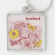 Etching with color! This decorative key fob is adorned with a colorful flower bouquet photograph digitally altered into a terra cotta edged template design with yellow highlighted daisies. Click "Personalize it" fill in or remove the text in the template field. Click "Customize it!" to select a font style, size and color you prefer.
