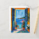 Illustrated view from terrace window overlooking the Mediterranean Sea.