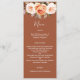 This boho terracotta fall wedding reception menu is perfect for a bohemian style wedding. This menu features watercolor florals in the color scheme burnt orange, terracotta, & blush pink with sage greenery on a terracotta background. This trending color palette is perfect for a late summer or autumn wedding. Make this menu your own by including all of the wedding reception menu details. For further personalization, please click the "customize further" link and use our design tool to modify this template