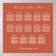 Terracotta 14 Table Wedding Seating Chart Poster, please personalize the names of the couple and the names of the guests along with any of the other text that you may wish to personalize. A stylish seating chart poster featuring elegant white text on a lovely terracotta color background.