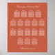 Terracotta 17 Table Wedding Seating Chart Poster, please personalize the names of the couple and the names of the guests along with any of the other text that you may wish to personalize. A stylish seating chart poster featuring elegant white text on a lovely terracotta color background.