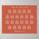 Terracotta 22 Table Wedding Seating Chart Poster, please personalize the names of the couple and the names of the guests along with any of the other text that you may wish to personalize. A stylish seating chart poster featuring elegant white text on a lovely terracotta color background.