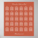 Terracotta 30 Table Wedding Seating Chart Poster, please personalize the names of the couple and the names of the guests along with any of the other text that you may wish to personalize. A stylish seating chart poster featuring elegant white text on a lovely terracotta color background.