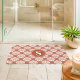Embrace warm coastal vibes with this terracotta and white bath mat. The earthy terracotta hue is beautifully accented by a repeating pattern of seashells in crisp white. Personalize it with your initial in the center for a touch of modern elegance. This design brings a touch of the seaside to your bathroom, creating a relaxing and stylish space.