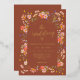 Rustic Fall Floral arch Wedding Invitation with Gold Script and burnt orange terracotta Background
