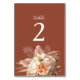 Add a warm boho touch to your reception with this terracotta wedding table number card, featuring elegant peach and cream florals. Perfect for rustic autumn weddings or garden celebrations, it guides guests beautifully while enhancing your tablescape.
