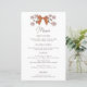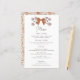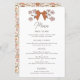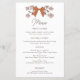 Coquette and rustic wedding dinner menu list featuring hand drawn illustration of terracotta brown bows and flowers.