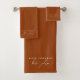 A beautiful Terracotta Burnt Orange design incorporating signature script font typography. A classy and stylish bathroom towel set design ideal for anyone. Customize the gold monogram text and script typography bathroom towel set and make it your own!