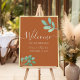 Welcome your guests in style with this rustic bohemian elegant wedding poster, featuring a modern fall design in terracotta burnt orange. Adorned with gold accents, watercolor eucalyptus greenery and refined simple calligraphy script, it beautifully sets the tone for your special day with a blend of botanical charm and sophisticated warmth.