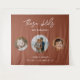 Looking for a fun and unique way to add some personality to your engagement party backdrop? Look no further than this hilarious engagement party tapestry! Featuring photos of the happy couple as kids alongside a picture of them now, this tapestry is sure to make your guests laugh and reminisce about the good old days.