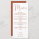 This terracotta elegant script wedding menu can be personalized with all your special wedding day menu, names and special date. Designed by Thisisnotme©
