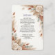 This refined layout balances an earthy palette of rust, off-white, and pale green using asymmetrical floral corner arrangements over a smooth background. Visual elements include softly illustrated dried pampas grass, palm fans, and eucalyptus sprigs, structured around a highly legible, classic serif typographic hierarchy.This is a flat printed image with a watercolor botanical illustration effect, not actual raised material.