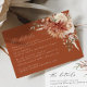This elegant terracotta dahlia rose wedding details card showcases rich floral artwork on a warm terracotta background, creating a romantic and refined accent for fall and rustic weddings. Designed to present reception and accommodation information beautifully, this enclosure card pairs seamlessly with classic and elegant wedding styles. Part of a matching terracotta dahlia rose wedding suite including invitations, RSVP cards, save the dates, signage, and coordinated day-of stationery.