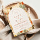 A refined western-inspired design featuring warm desert florals, cacti, and earthy botanicals arranged in a rich, painterly composition. The arched layout adds a timeless architectural feel, balancing the bold surrounding pattern with a clean, elegant center. Terracotta tones, soft neutrals, and muted greens create a grounded yet romantic palette—perfect for a modern desert or western celebration. Ideal for couples who want something unique, artistic, and effortlessly sophisticated.