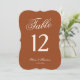Earthly chic terracotta die cut wedding table number for a refined desert modern wedding reception, featuring a warm burnt orange palette perfect for couples who love quiet luxury style and old money wedding aesthetics. This uniquely shaped modern terracotta design adds a distinctive, elevated touch to your table decor—stylish, memorable, and effortlessly luxe.