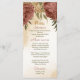 Beautiful earth tone fall wedding menu card featuring terracotta and gold beige flowers with green leaves . The gold glitter details are simulated.