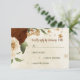 Beautiful earth tone fall wedding response card featuring terracotta, beige and cream flowers with green leaves .