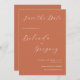 A beautiful design showcasing elegant script calligraphy typography on a terracotta burnt orange background . Perfect for anyone who loves modern minimalist designs. A stylish and trendy wedding save the date card design with classic elements. Matching wedding stationery items and other wedding invite formats are also available.