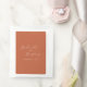 A beautiful design showcasing elegant script calligraphy typography on a terracotta burnt orange background . Perfect for anyone who loves modern minimalist designs. A stylish and trendy wedding favor design with classic elements. Matching wedding invitations and other stationery items are also available.