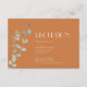 This Terracotta Eucalyptus Deco wedding reception details enclosure card provides a minimalist boho, and rustic country, western, or desert theme. The simple sage green eucalyptus succulent foliage compliments the terracotta autumn background, while the art deco type combined with the botanical greenery and burnt orange backdrop creates a versatility to combine with other colored products from this collection. These color combinations are sure to wow the guests invited to and attending your marriage celebration.