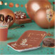 Terracotta Fall Paper Plate. Serve your celebration in style with these square paper plates, showcasing a stunning arrangement of hand-painted watercolor burnt orange and terracotta leaves, soft cream and beige dahlias, and rich copper and rust-colored roses. The warm copper background adds a cozy, elegant touch, making these plates a beautiful and practical addition to your autumn wedding. Elevate your tablescape—customize your square plates now.